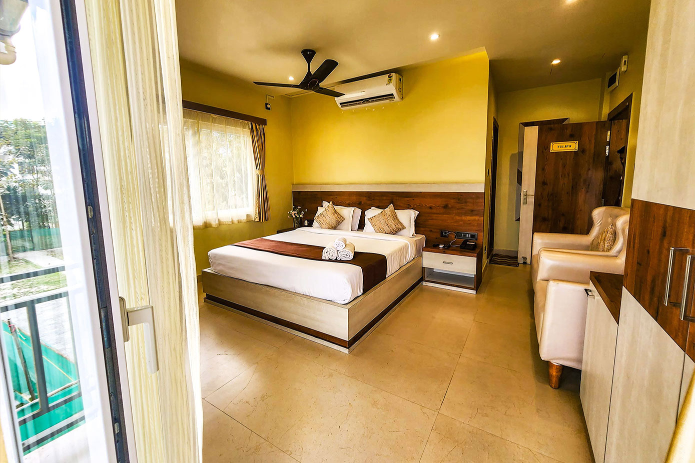 Our Executive Rooms in Oxytel share a similar design as family rooms. The room includes king size bed which is spacious and comfortable well equipped with the latest amenities, attached bathrooms & can witness a beautiful view from its window. Dwell in the finest quality and most luxurious Oxytel club and resort in Murti Dooars.