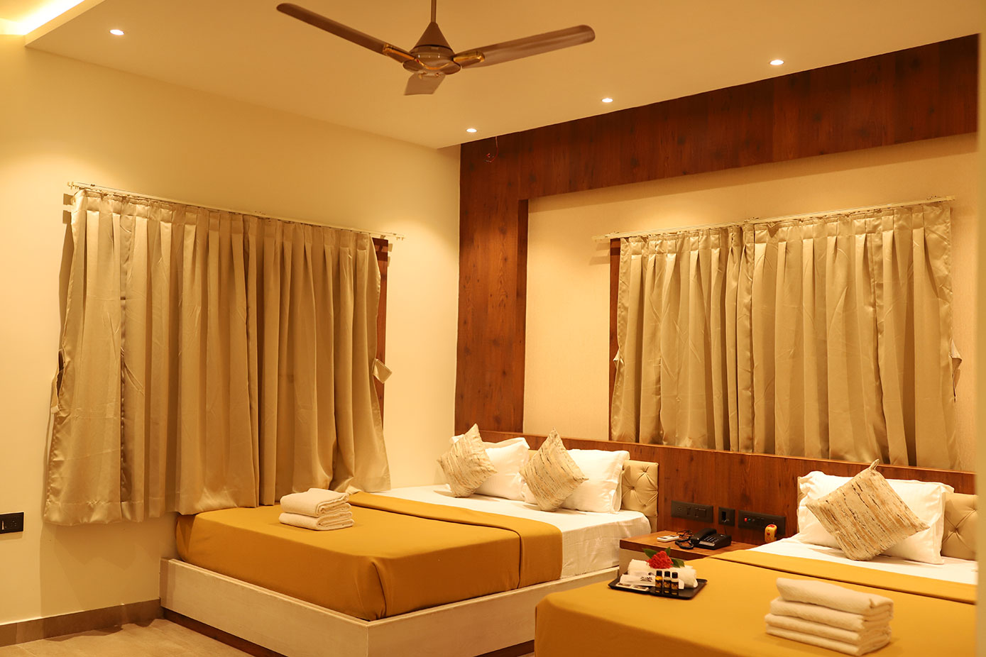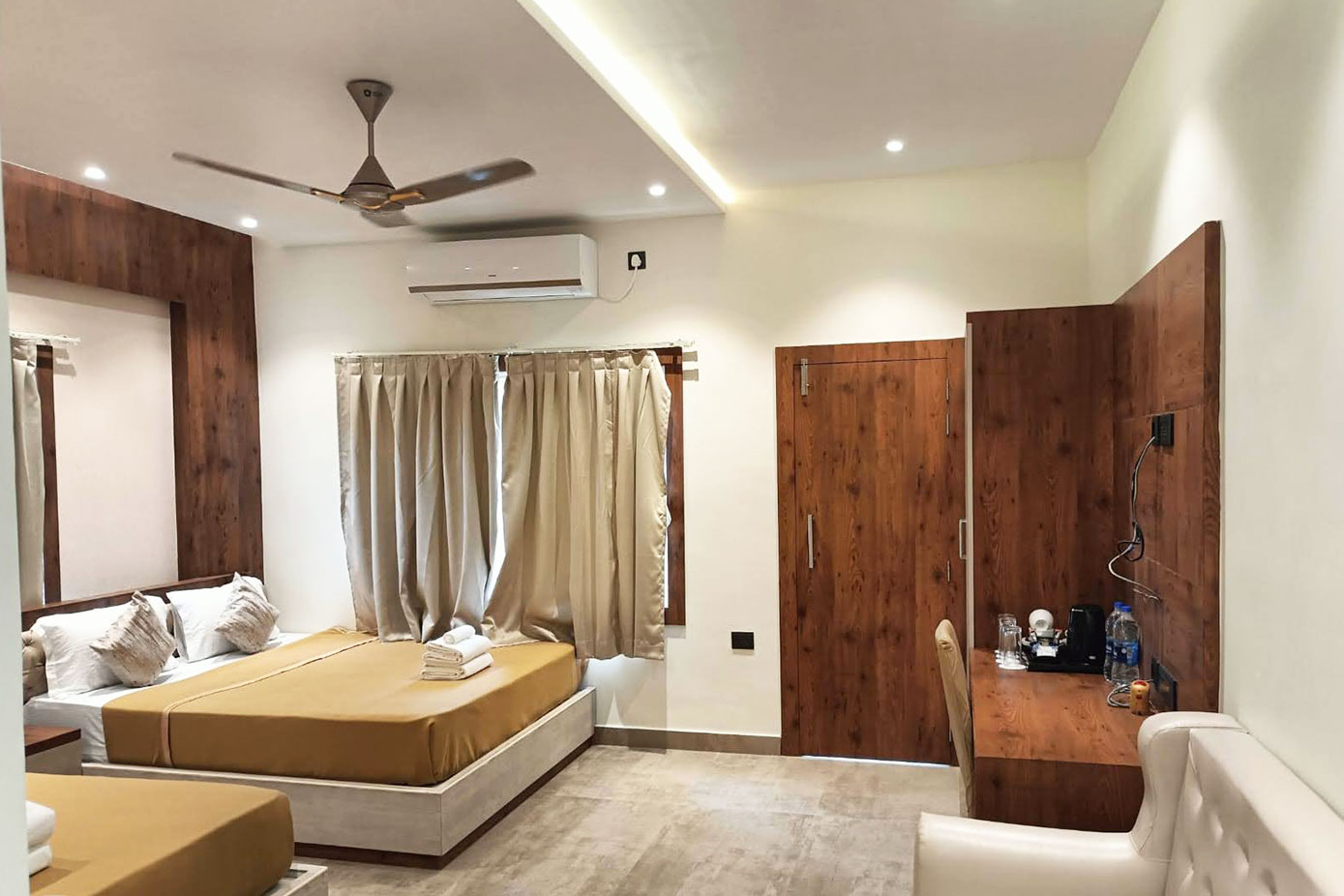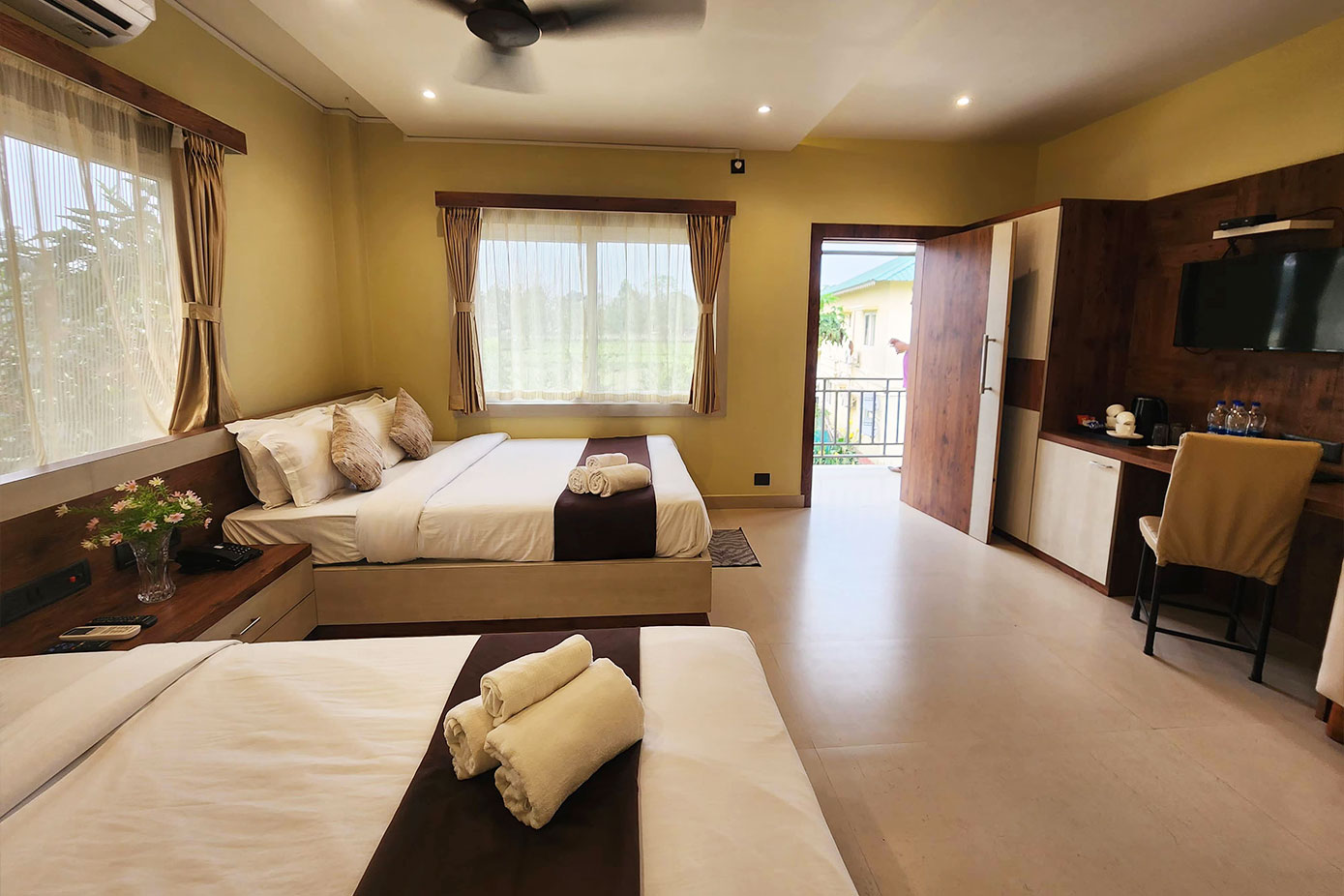 Equipped with the latest amenities, natural lights, air conditioner, two queen-sized beds, and an attached bathroom. The room delivers profound luxury and is ideal for all family guests. You will find yourself surrounded by a pool of luxury.